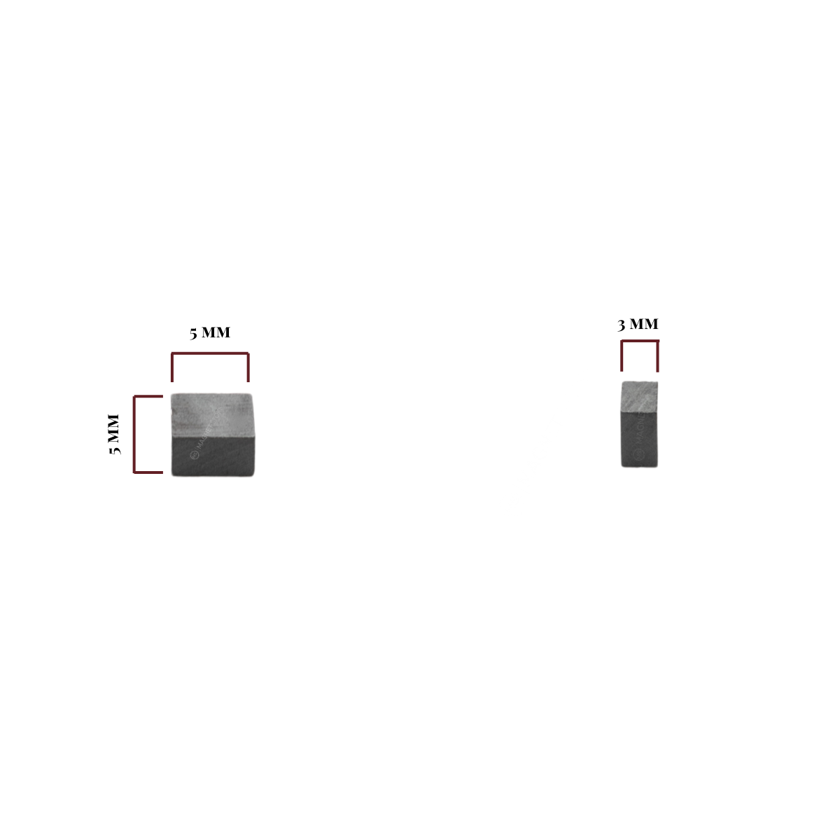 5mm long x 5mm wide x 3mm thick |